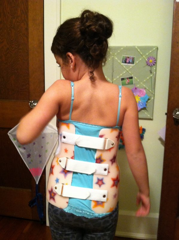 Initially Maya was prescribed a Boston brace, constructed of a custom-fit lightweight plastic that she wore under her clothes for 23 hours a day. This type of brace acts as a holding device to keep the spine from developing more of a curve.