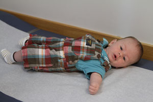 Next was the physical therapist. I was pretty excited to hear what she thought of Jordan’s legs and feet. She gave us some exercises to keep his feet and torso stretched, along with keeping his head straight when he lies on his back. Jordan tends to lie on one side of his head or the other. Keeping his head straight will allow him to strengthen the muscles to keep it steady in the middle.