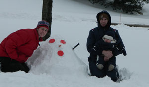 Our Yorkie Shitzu mix, Sasha, was also included in the fun. Randy and I did the honors of building a quick snow man, then Jordan joined in. We placed him on the ground for his first snow angel. Yet again we missed the priceless look of… ‘Are you kidding me guys, this is cold.”