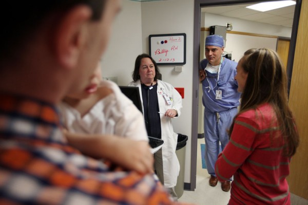 11:31 a.m. After answering their questions, Dr. Milo takes Megan and Randy back to recovery to see Jordan.