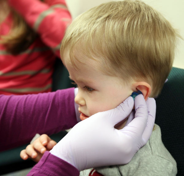 1:59 p.m. After they leave recovery, the Pollocks go to the ENT Center so Jordan can be fitted for ear plugs.