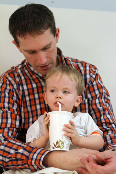 9:43 a.m. Randy and Megan have to undress Jordan for his surgery.
