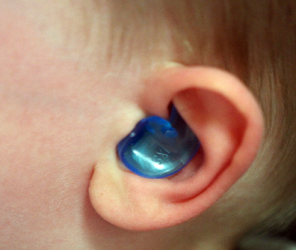 2:02 p.m. The blue silicone ear plugs will protect Jordan’s ears.