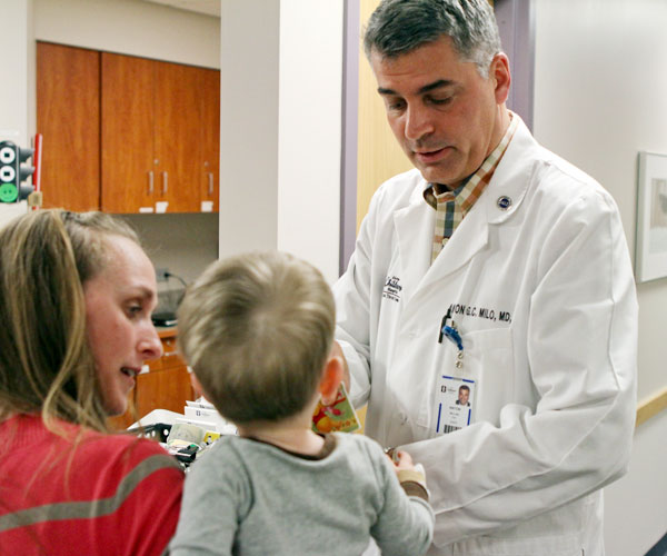 10:29 a.m. Dr. Milo stops by Jordan’s exam room to talk to his parents before surgery.