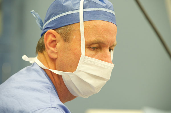 At 9:30 a.m. the surgeons make the initial skin incision.