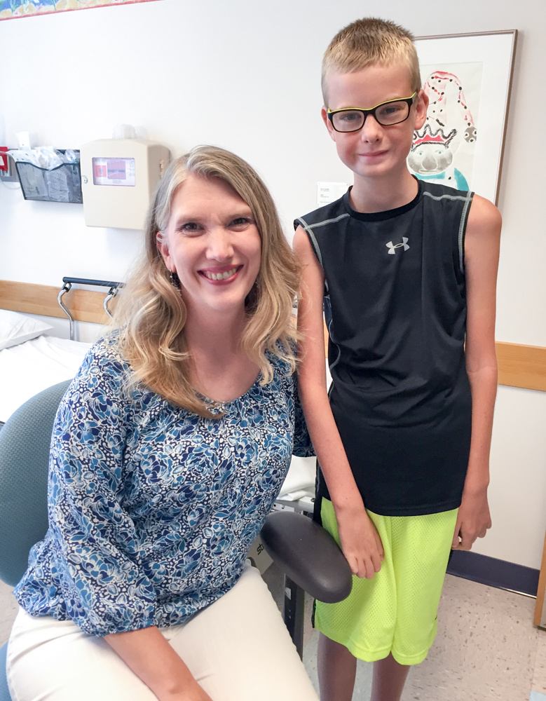 Cooper (pictured here with Dr. Kathy Mosher) has an extremely rare variation of the debilitating neurological disorder Charcot-Marie-Tooth disease, said his mom, Heidi, who is also going on the trip.