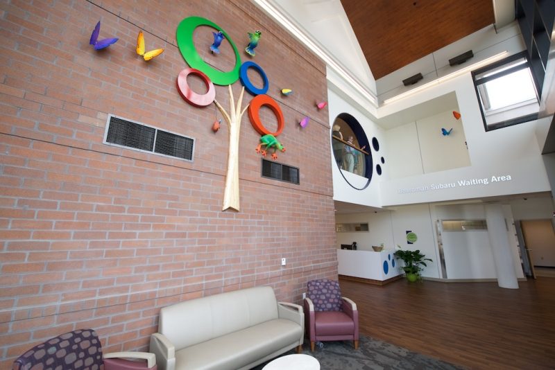 “As you walk through the addition today, you’ll see firsthand how we designed this new facility through the eyes of a child,” said Hrina. “From the signature art in the entry to the ball machine on the first floor to the throwing wall in the sports rehab area. Our sole focus is children, and I think that comes through loud and clear.”