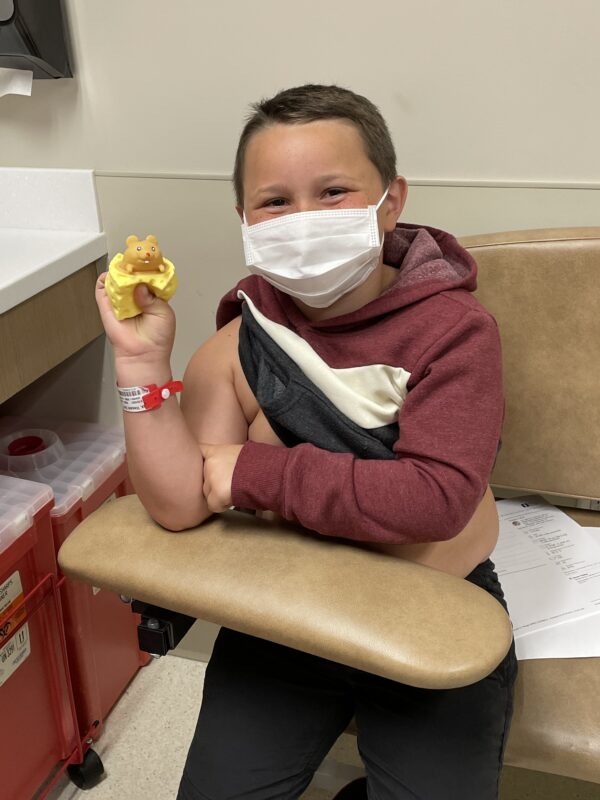A pop-up toy from Children’s Toy Fund, Inc. gave Vincent Parga a smile during his lab appointment.