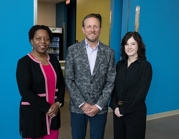Pictured from left: Bernett Williams, vice president of external affairs at Akron Children’s; Mark Smucker; and Shelly Brown, chief development officer and executive director of the Akron Children’s Foundation standing in front of the J. M. Smucker Company Bistro