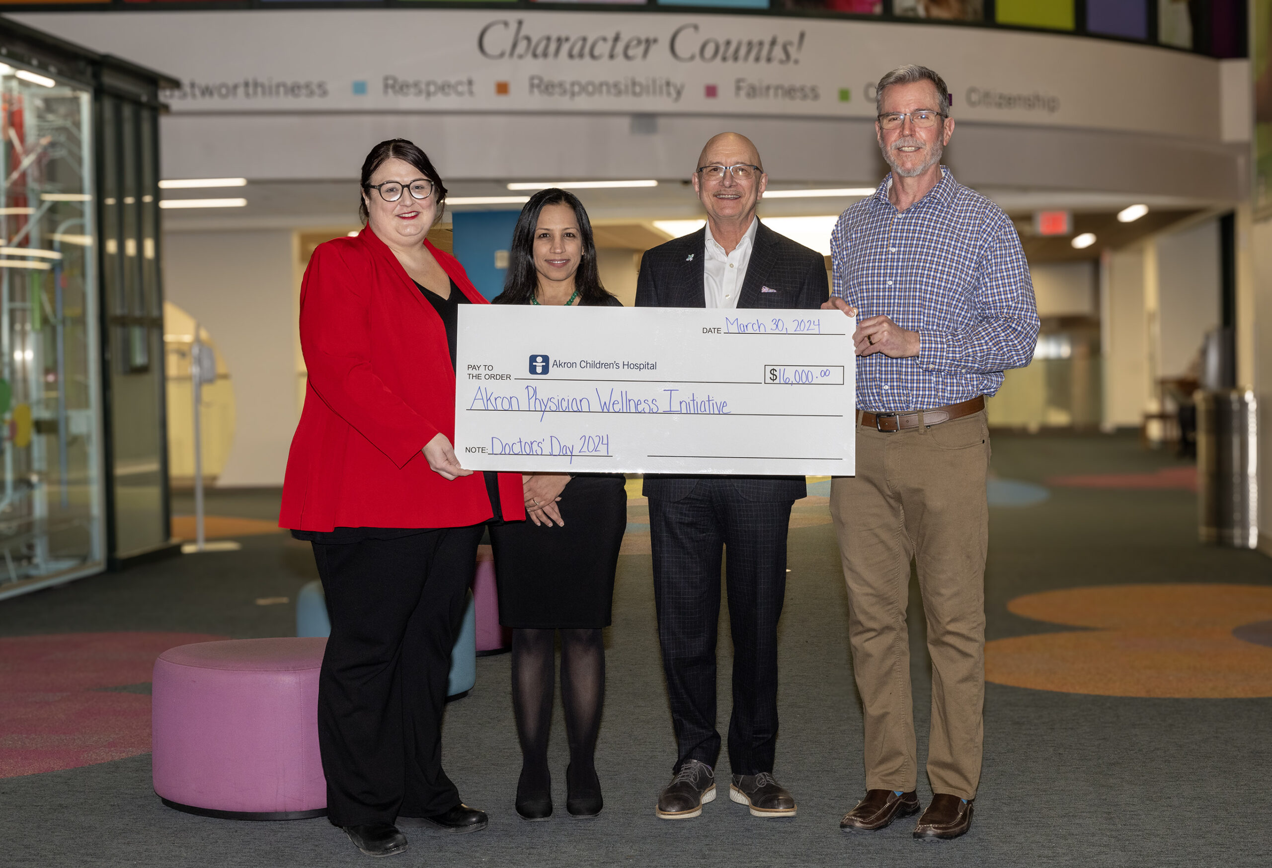 Med staff committee members, including Dr. Robert McGregor, Akron Children’s chief medical officer (2nd from right), present a check to the Akron Physician Wellness Initiative in honor of Doctor’s Day, March 30.