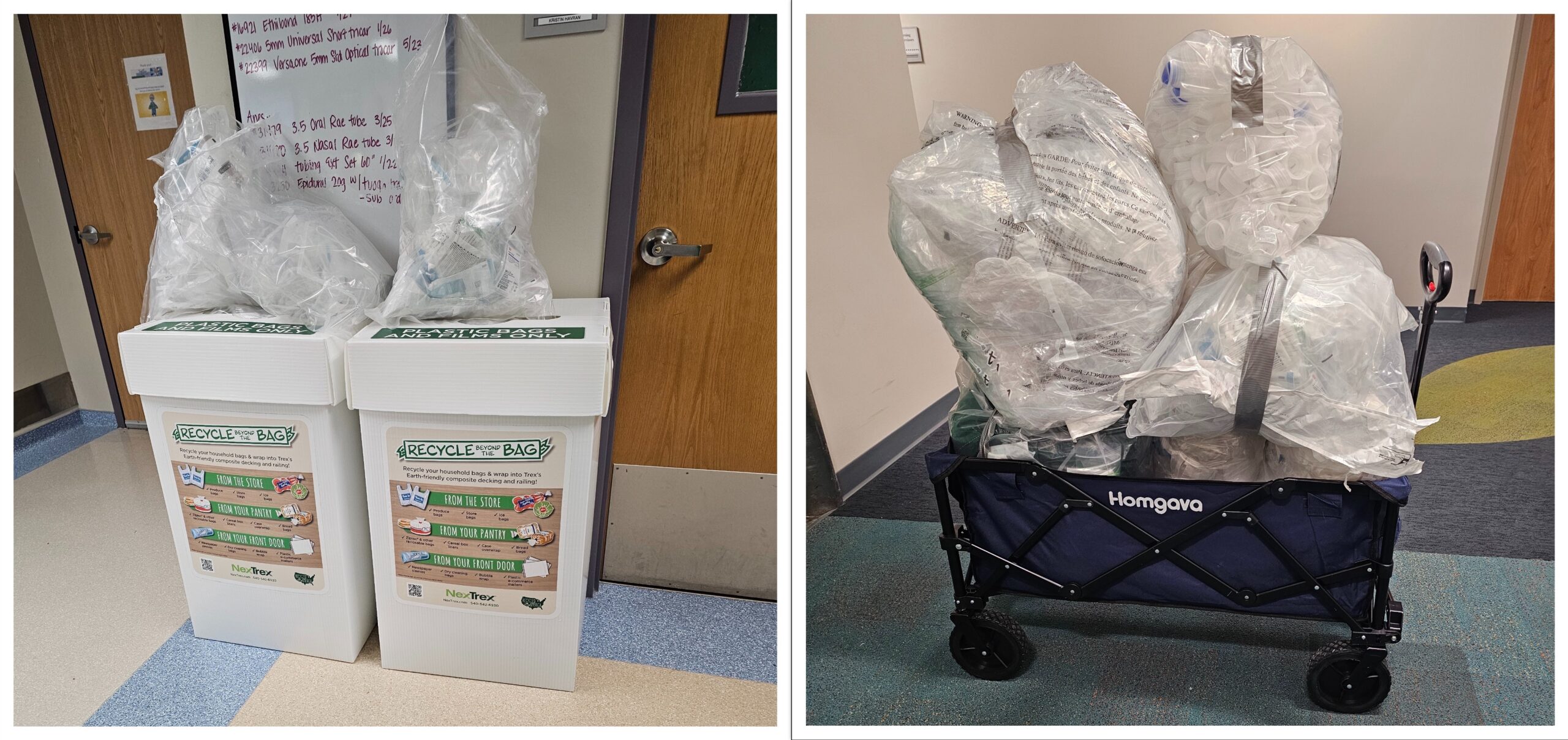 “I’m just the hauler,” she laughed. “I drag my wagon in about 3 days a week to collect the plastic film in our department. The OR (operating room) team is doing the great work. They are the ones that made it successful and took the time to collect the plastic.”