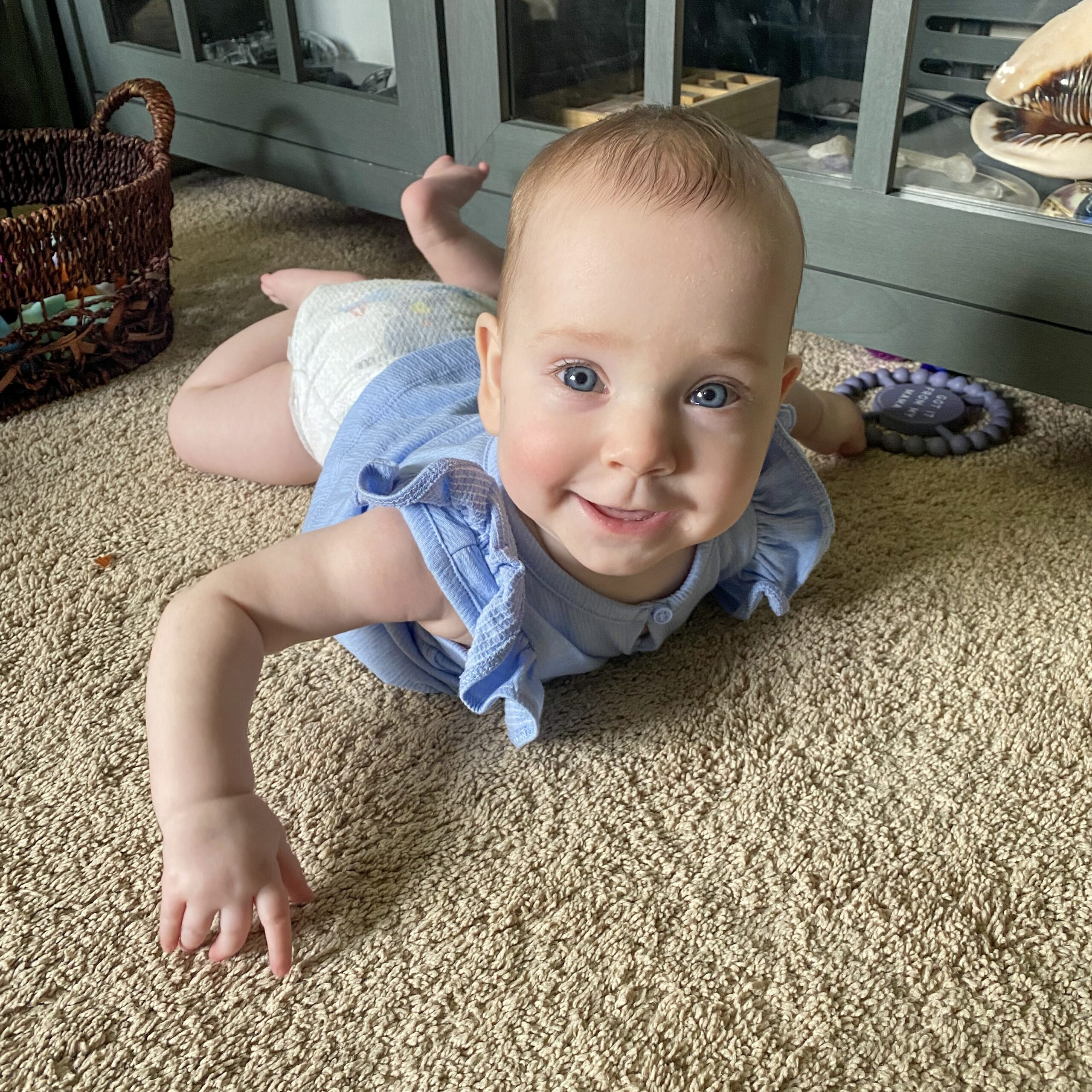 Arianna underwent 9 intrauterine blood transfusions and was given a 10% chance of survival. Today, she’s a happy, healthy baby eager to crawl to keep up with her older siblings.