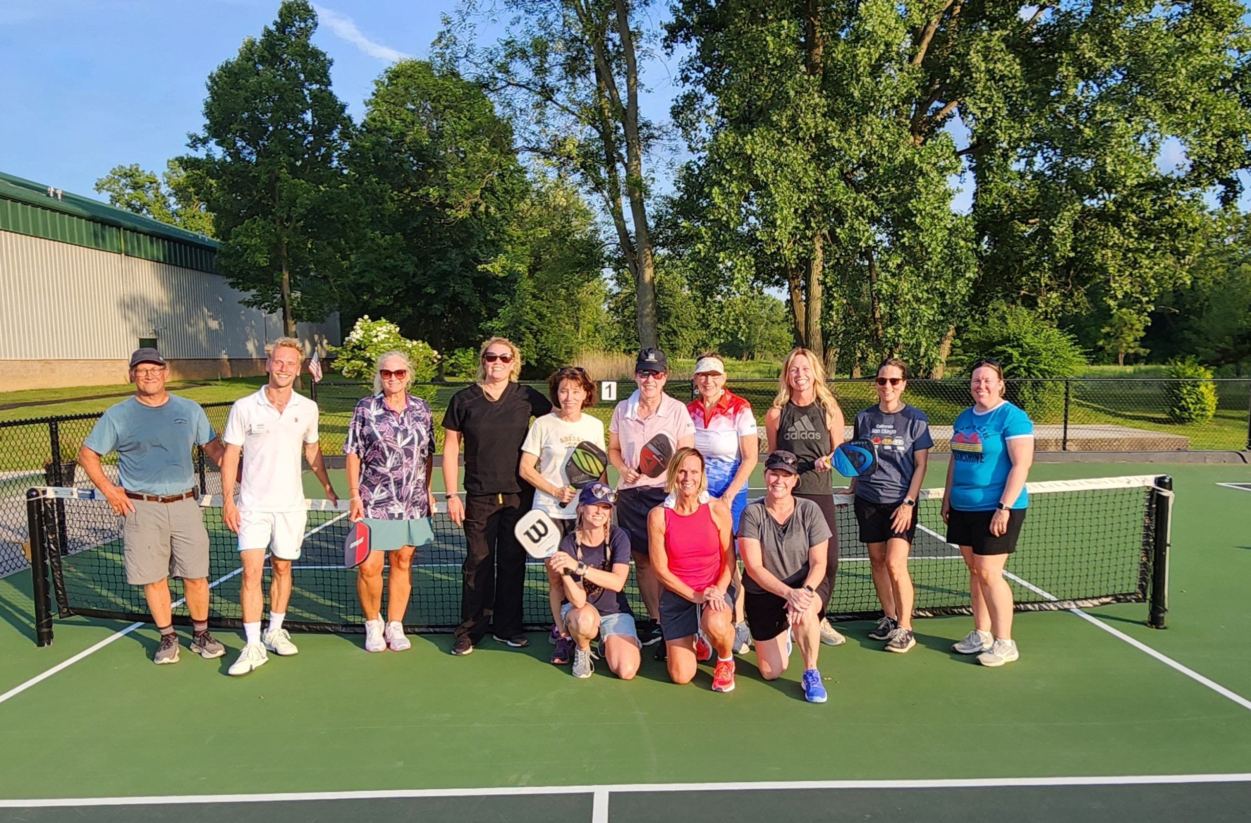Members of Akron Children’s medical staff enjoy time together on the pickleball courts at Akron’s Towpath Tennis Center.