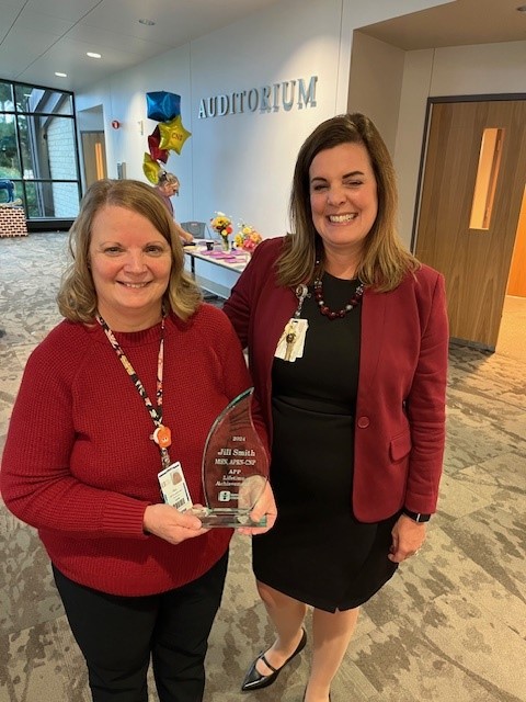 Jill Smith (left), the lead APP in Akron Children’s Perioperative Surgical Home, won the APP Lifetime Achievement Award. She’s pictured with Jenn Davis, DNP, director of Perioperative Services.