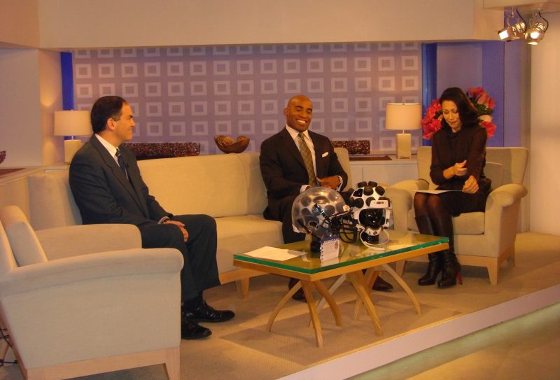 Dr. Congeni, on the set of The Today Show, discussing concussions with Tiki Barber and Ann Curry.