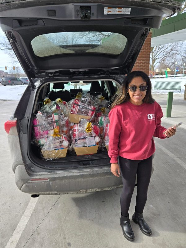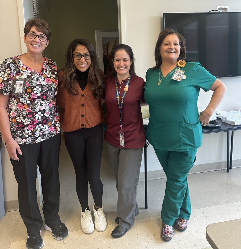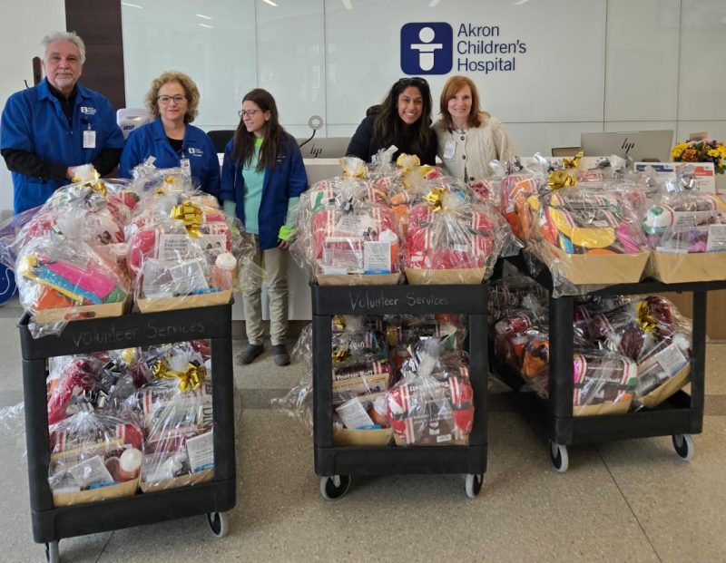Devika Walia, second from right, delivering her baskets to Akron Children’s NICU parents, in 2024.