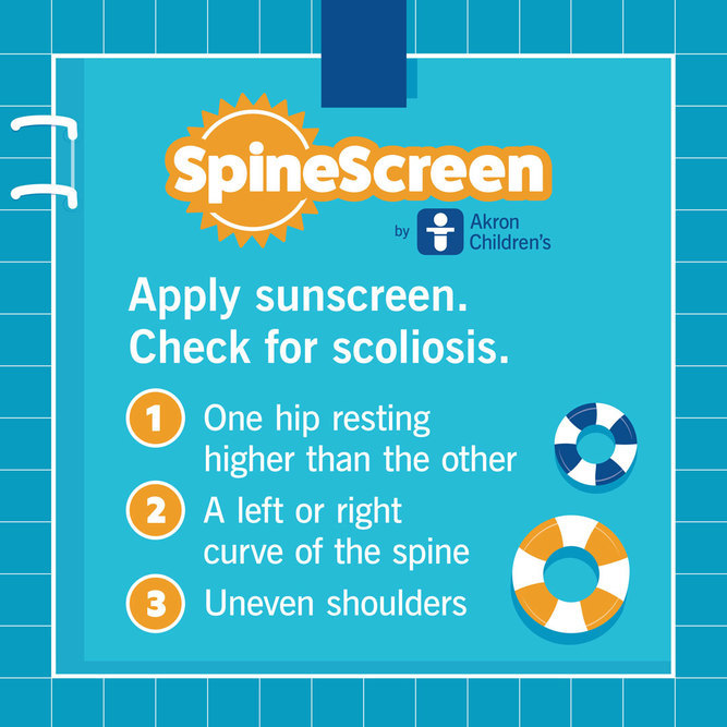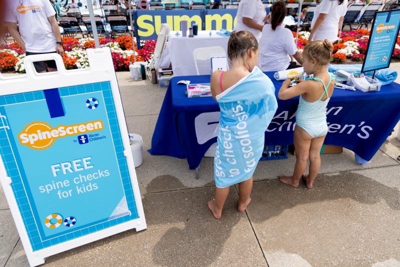 On Aug. 10, Akron Children’s hosted a SpineScreen event at the Beachwood Aquatic Center. With more than 100,000 new pediatric cases of scoliosis identified each year in the U.S., Akron Children’s has turned one form of protection into a new form of prevention by encouraging parents to check for signs of scoliosis when applying sunscreen – a moment nearly every family experiences during summer.