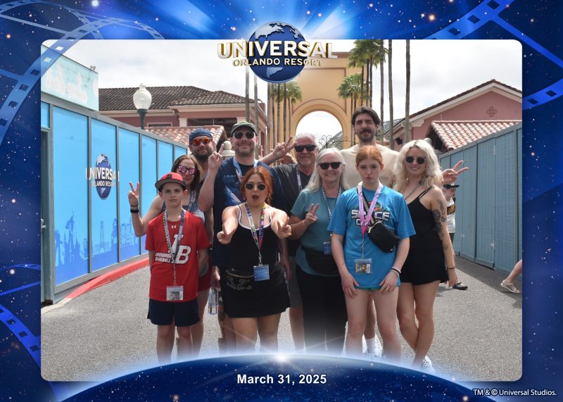 Vicki, pictured with her family, at Universal Studios Orlando in March 2025.