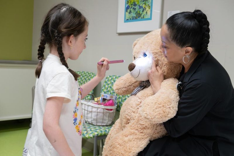 After deeming the bear fit for surgery, Madelyn scrubbed in and gowned up. She listened closely as Dr. Chen guided her through each step – using real surgical tools – to mark the surgical site, make the incision, stitch the patient back up and place a neck-stabilizing collar. It was only appropriate that Madelyn’s favorite artist, Taylor Swift, was streaming in the background.