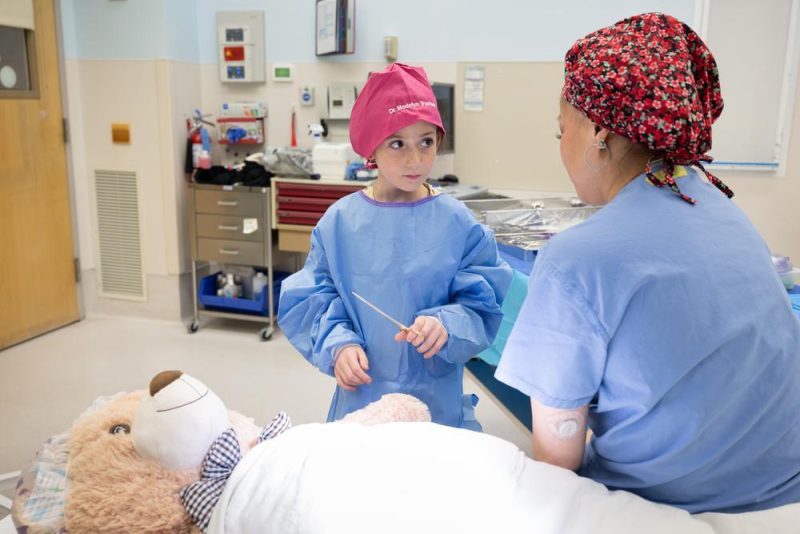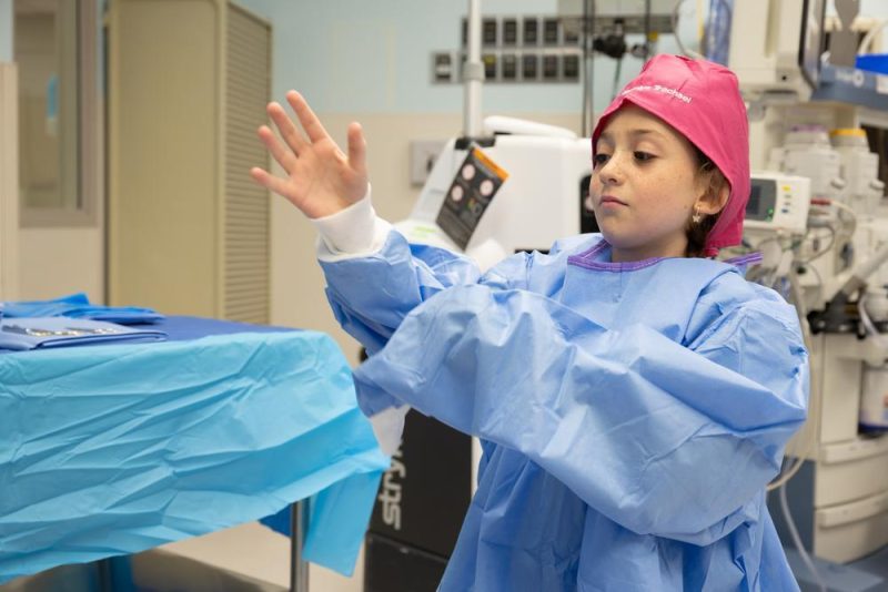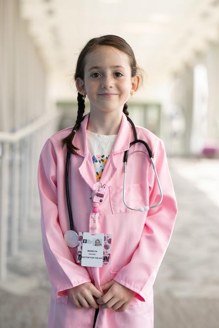 Madelyn has wanted to be a doctor for as long as she can remember. As a “new employee,” she received an ID badge, a pink lab coat and a personalized scrub cap.
