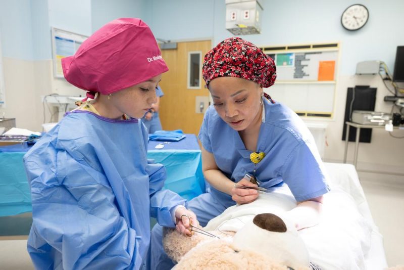 Guided by Dr. Chen, Madelyn used real surgical instruments to perform the surgery.