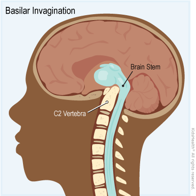 A child can be born with the condition (congenital basilar invagination) or develop it over time due to soft bones.