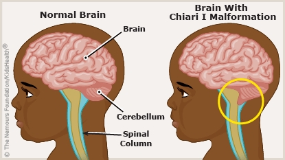 Chiari I malformation (key-AR-ee mal-fore-MAY-shun) is when the cerebellum — the part of the brain that controls coordination and muscle movement — pushes down through the hole in the bottom of the skull. This hole is called the foramen (feh-RAY-men) magnum. Usually just the spinal cord passes through the foramen magnum.