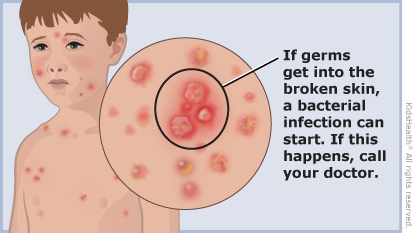 A virus causes chickenpox, so antibiotics (medicines for infections caused by bacteria) can't treat it. But doctors will prescribe antibiotics if bacteria infect the sores. This can happen when kids scratch and pick at the blisters.