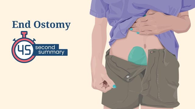 In an end ostomy, the surgeon removes the problem area in the bowel. Then, they bring the healthy end of the bowel to an opening made in the wall of the belly. They stitch the edge of the bowel to the skin to create a stoma (STOE-muh). An ostomy pouch is placed on the outside of the stoma to collect waste. Mucus that forms in the bowel past the stoma will come out the anus (where poop normally leaves the body).
