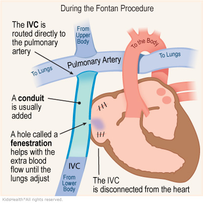- Disconnects the inferior vena cava (IVC) from the heart and connects it to the pulmonary artery using a conduit (tube).