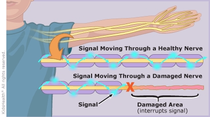 Guillain-Barré (gee-LAN-buh-RAY) syndrome temporarily damages these nerves, which interrupts the signals. So someone with the condition may have weakness or problems moving, or may feel pain, numbness, or tingling in the arms or legs.