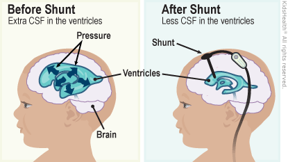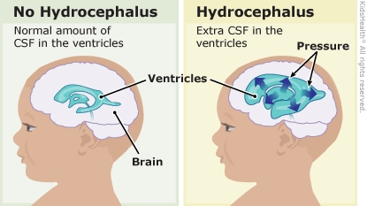 Hydrocephalus is a buildup of cerebrospinal fluid (CSF) in the hollow places inside the brain. These hollow places are called ventricles. The buildup of CSF can put pressure on the brain.