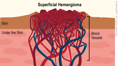 An infantile hemangioma (hee-man-jee-OH-muh) is a type of birthmark. It happens when a tangled group of blood vessels grows in or under a baby's skin. It’s usually noticed in the first few days to months of life. Most infantile hemangiomas grow larger at first, and then slowly go away. But some can leave a mark or loose skin.