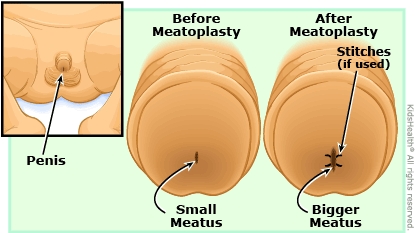 Meatoplasty (also called meatotomy) makes the meatus bigger so that pee can come out normally.
