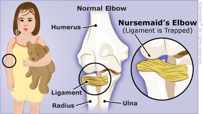 Nursemaid’s elbow is a common injury among toddlers and preschoolers. It happens when a ligament slips out of place and gets caught between two bones in the elbow joint.