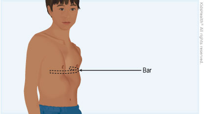 - Places one or more steel bars behind the breastbone and attaches them to the outer edge of the ribs. They use a tiny camera to get the bars in the right place.