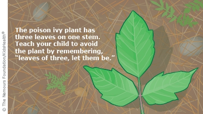 - Teach them how to identify poison ivy, oak, and sumac, so they can steer clear of them (they should be especially careful of plants if the leaves look shiny).