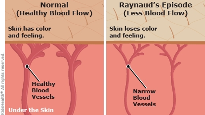 Raynaud's syndrome is a condition that makes a person's fingers or toes temporarily feel cold, numb, tingly, or painful. When a child has a Raynaud's (ray-NOZE) episode, blood vessels under the skin become narrow, so less blood gets to the affected area.