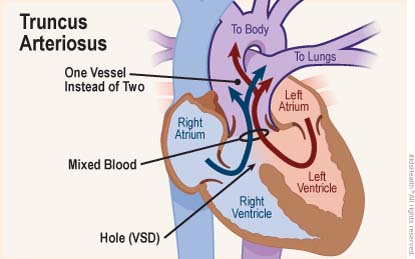 But in truncus arteriosus, the arteries didn't become separate — instead, a baby's heart has one large artery.