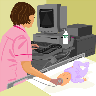 If your baby is in the hospital and can't easily be brought to the radiology department, a portable ultrasound machine can come to the bedside. This is often the case in a neonatal intensive care unit (NICU). The scan can be done with the baby on their stomach or back, or even in a parent's arms, if needed. You can feed your baby, or offer a pacifier or favorite toy for comfort.