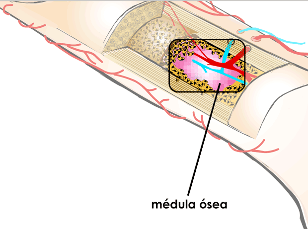 - En muchos huesos, la parte esponjosa protege la parte más interna del hueso: la médula ósea. La médula ósea es una especie de espesa gelatina y su función consiste en fabricar células sanguíneas.