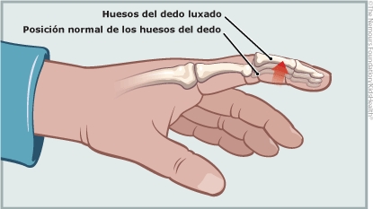 Una dislocación (luxado) es un cambio en la posición normal de los huesos de una articulación. La dislocación de un dedo puede ocurrir por una caída o por una lesión deportiva, especialmente si el dedo queda aplastado o se dobla hacia atrás.