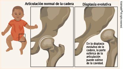 Una displasia evolutiva de cadera es un problema en la manera en que se forma la cadera de un bebé. A veces, esta afección empieza antes de que nazca el bebé y otras veces ocurre después de que nazca, a medida que va creciendo. Puede afectar a una o ambas caderas.