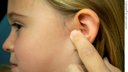 - Después de administrar las gotas, presione suavemente el área en la parte frontal de la oreja sobre el orificio. Haga esto varias veces para mover las gotas hacia el oído.