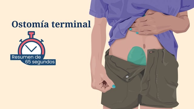 En una ostomía terminal, el cirujano extirpa o extrae la zona problemática del intestino. Luego, hace llegar el extremo sano del intestino hasta una abertura hecha en la pared del vientre. Cose mediante puntos el extremo del intestino a la piel para crear un estoma. Se coloca una funda o bolsa sobre la parte exterior del estoma para recoger los deshechos. Las mucosidades que se formen en el intestino más allá del punto del estoma saldrán a través del ano (por donde suelen salir las heces).