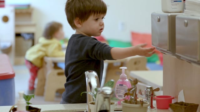 - Frotarse las manos entre sí durante por lo menos 20 segundos (lejos del chorro del agua). Los niños pueden cantar dos veces una canción corta como el "Cumpleaños feliz", para asegurarse de que dedican suficiente tiempo a la conducta de lavarse las manos.