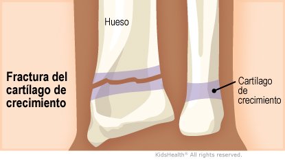 Las fracturas de los cartílagos de crecimiento ocurren cuando hay una rotura en el cartílago de crecimiento. Eso ocurre con más frecuencia en los huesos de los dedos, el brazo y la parte inferior de la pierna. La mayoría de las fracturas del cartílago de crecimiento se curan y no afectan el crecimiento futuro del hueso.