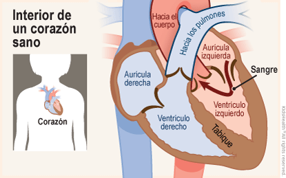 - las dos cavidades inferiores son el ventrículo derecho y el ventrículo izquierdo. Estas cavidades bombean sangre hacia afuera del corazón. Una pared llamada tabique interventricular separa ambos ventrículos entre sí.