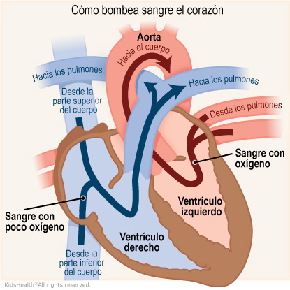 - Y el ventrículo izquierdo bombea sangre rica en oxígeno al resto del cuerpo a través de la aorta.