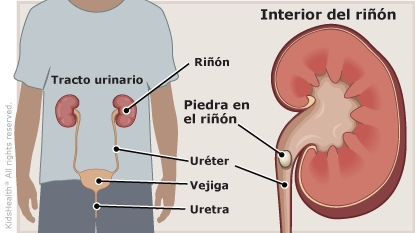Las piedras en los riñones (o cálculos renales) aparecen cuando los minerales forman cristales dentro de los riñones. Después, estos cristales crecen y se transforman en piedras. Las piedras en los riñones pueden pasar a las vías urinarias. Allí pueden causar problemas, como dolor y sangre en la orina. Algunas piedras también pueden bloquear el flujo de orina.